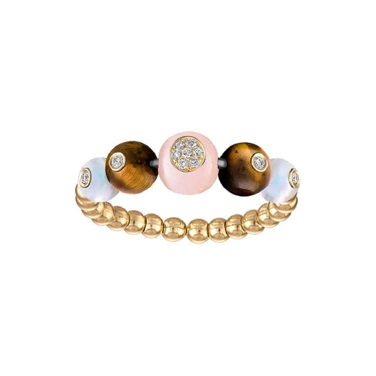 Introducing the Beaded Stack Ring, a new piece from the EP Bubbles collection, crafted in 14K gold with 0.15 carats of diamonds. This ring is designed to add a touch of structural elegance to your stack, featuring a unique blend of style and movement.