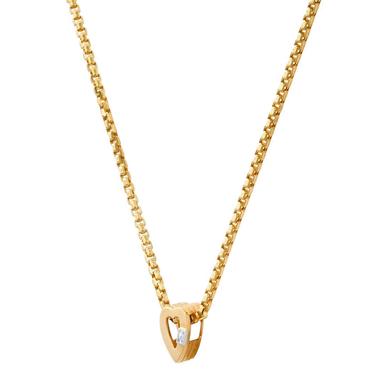 The Mini Heart charm is handcrafted in 14K gold with textured sides and diamond baguette. Pendant only. Chain not included.