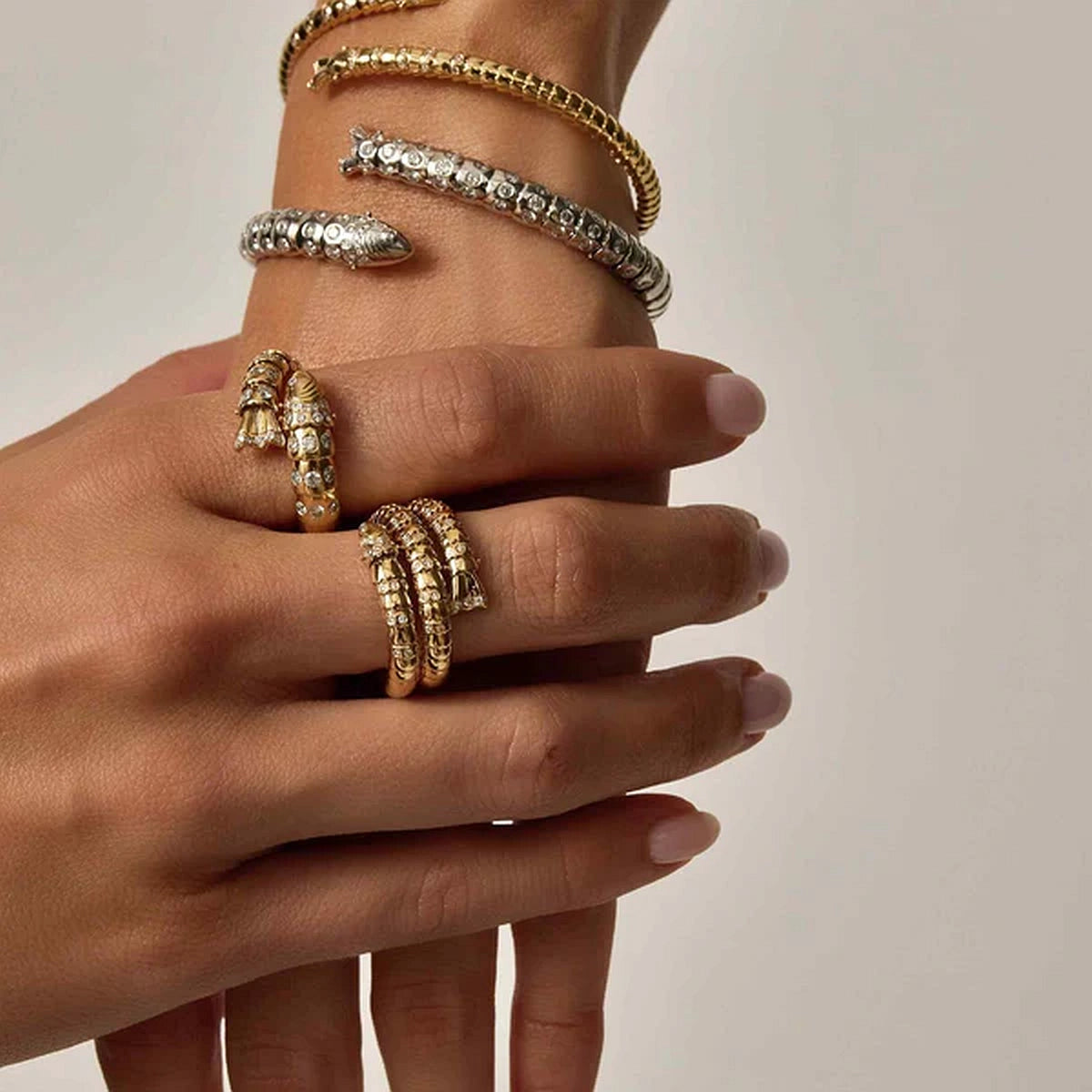 New to the EP Flora Fauna collection the Swedish fish double wrap ring is their take on a classic vintage style. Impeccably crafted in 14k gold using their signature flex style. Features .18 cts diamonds. Measures approximately half inch tall.